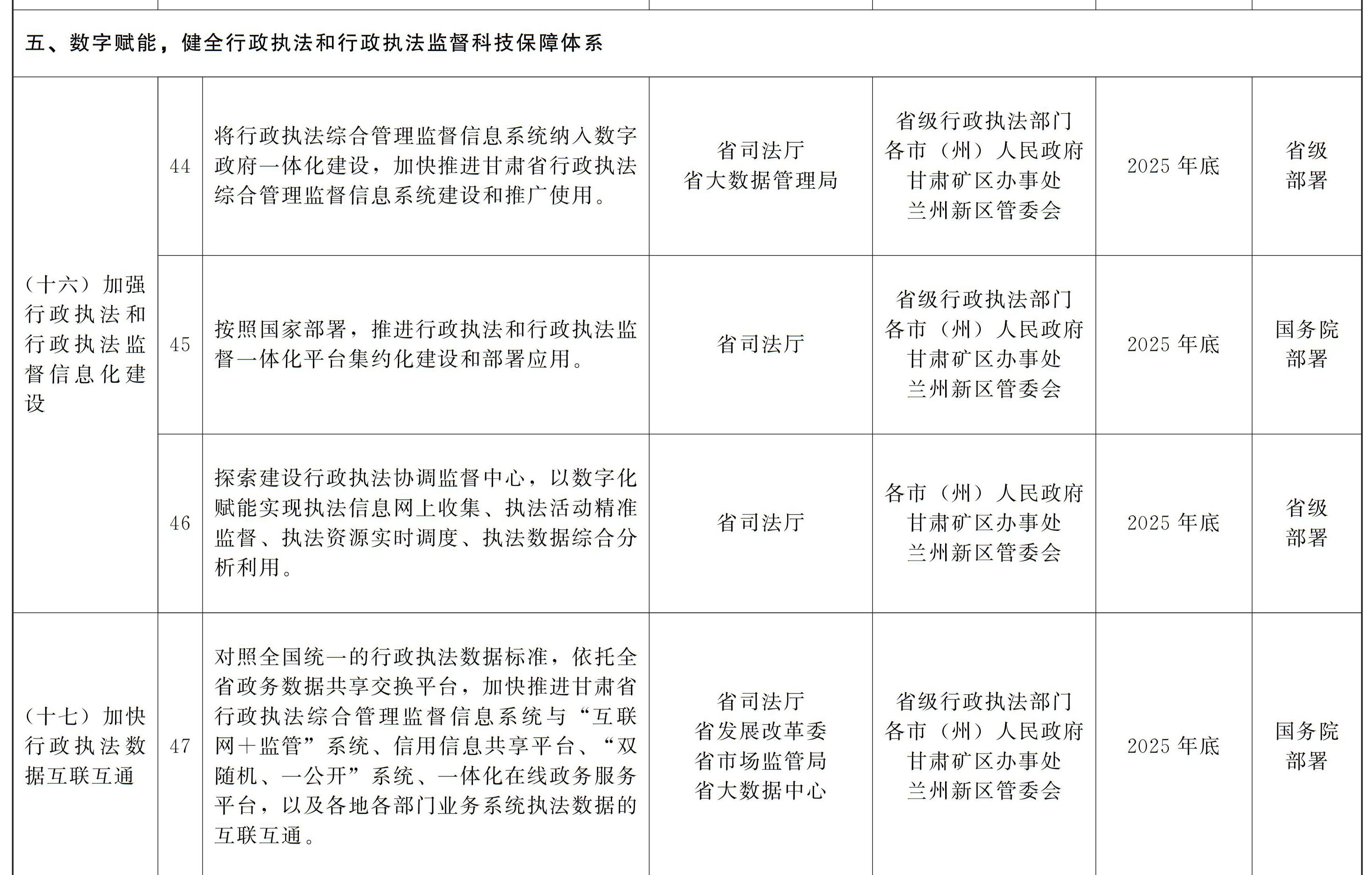 附件:甘肃省提升行政执法质量三年行动任务分解表